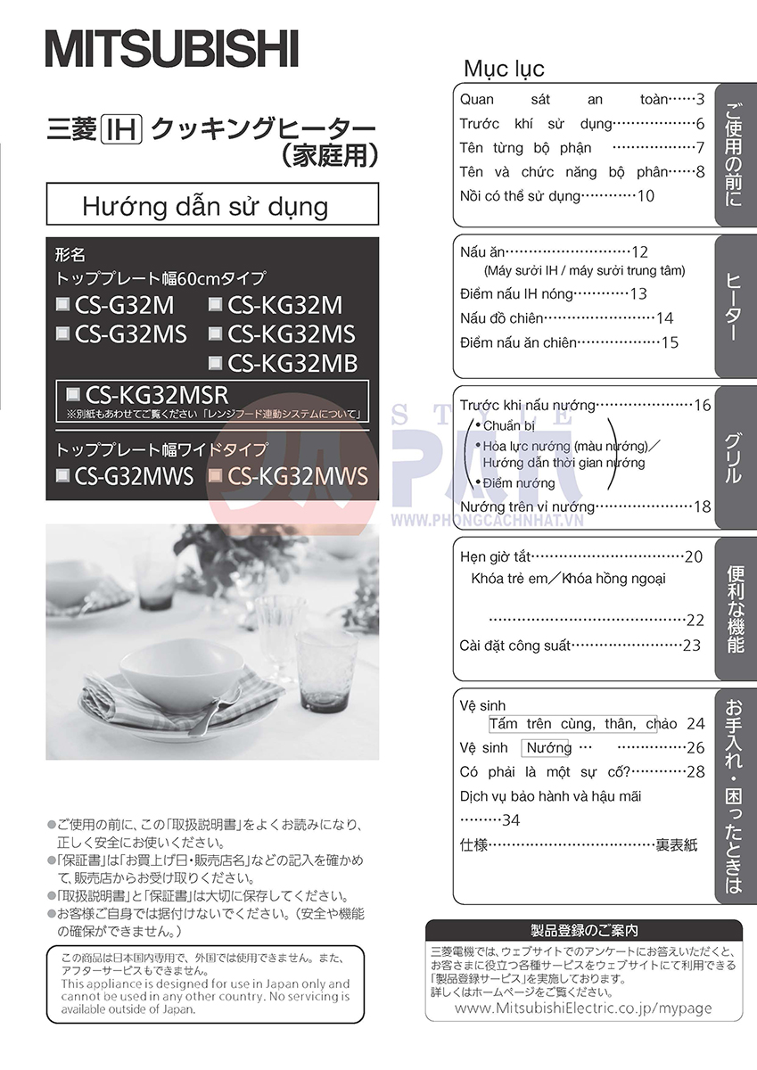 Tài liệu Hướng dẫn sử dụng bếp từ Mitsubishi CS-G318M | CS-G318MS | CS-G32M |CS-G32MS