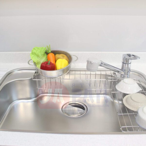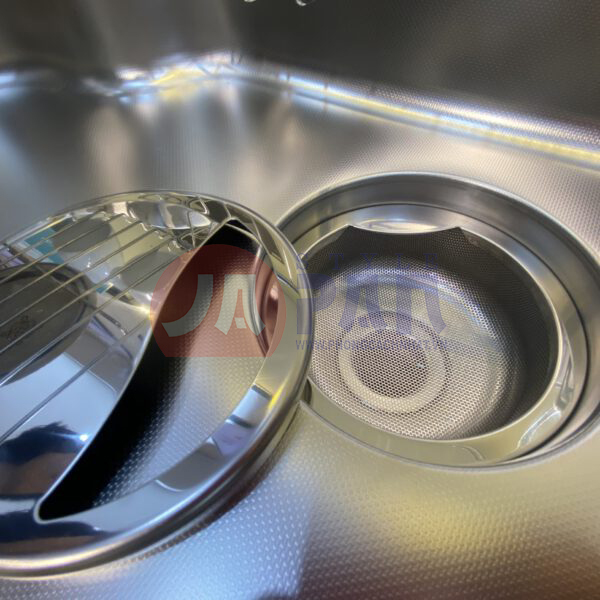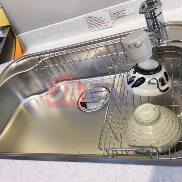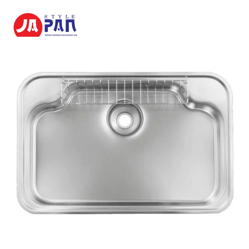 Chậu với bộ xả ngang với 2 lưới lọc rác, dễ dàng vệ sinh loại hết các rác nhỏ liti mà không lo tắc đường thoát nước. Châu rửa với kích thước ngang 77.4cm, sâu 50cm,  mẫu chậu này rất phù hợp dành cho khu vực bếp của Việt Nam.