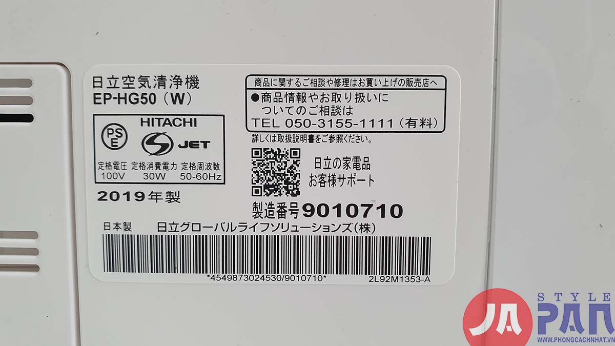 Thông số kỹ thuật Lọc không khí Hitachi EP-HG50 (W) Trắng