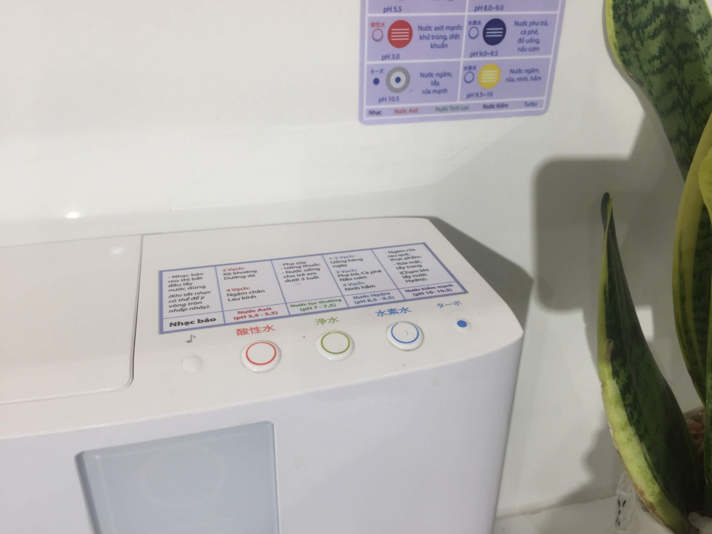 Loại nước thứ 5: Nước ion axit mạnh, độ pH khoảng 3.5 – 4.0 – Dùng để sát khuẩn, tẩy rửa các dụng cụ làm bếp, vệ sinh bàn bếp…