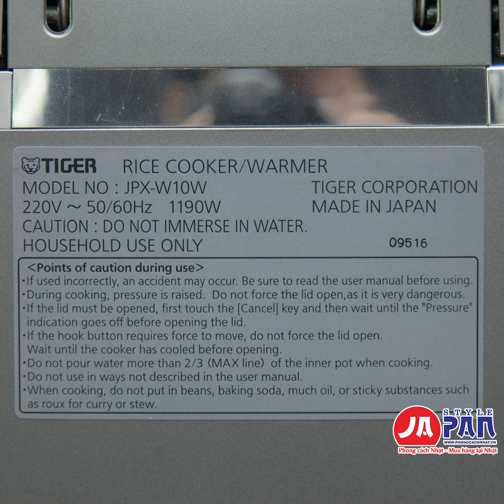 Thông số kỹ thuật nồi cơm điện Tiger JPX-W10W