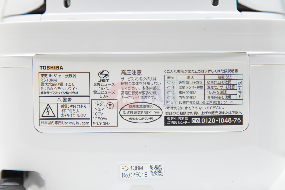 Thông số kỹ thuật Nồi cơm điện Toshiba RC-10RM | Cao tần | Chân không | 1L