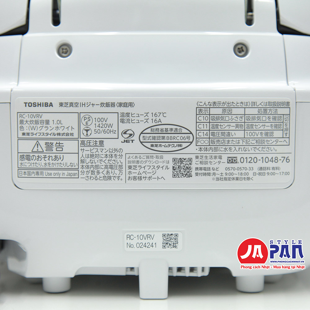 Nồi cơm điện Toshiba RC-10VRV (W) | 1.0L