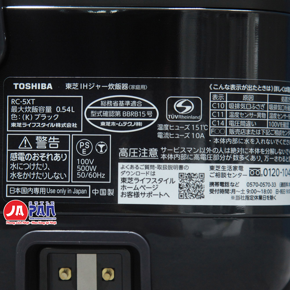 Thông số kỹ thuật Nồi cơm điện Toshiba RC-5XT