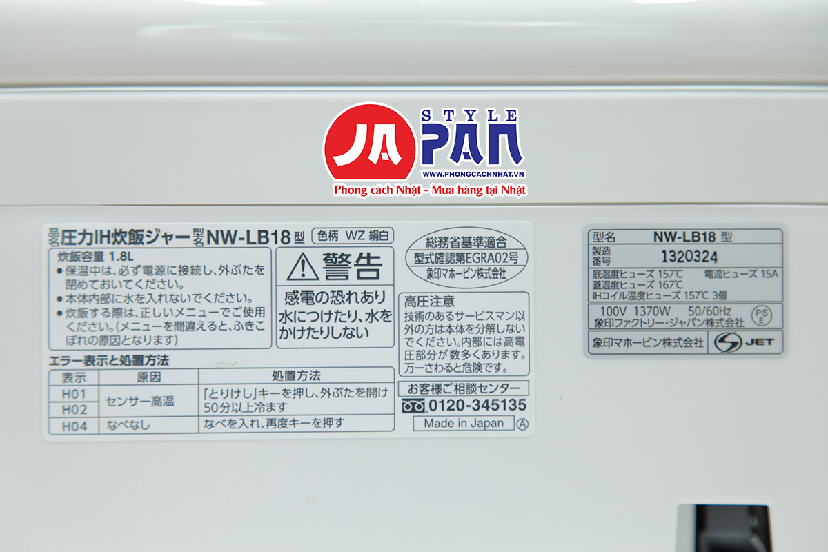 Thông số kỹ thuật nồi cơm Zojirushi NW-LB18-WZ